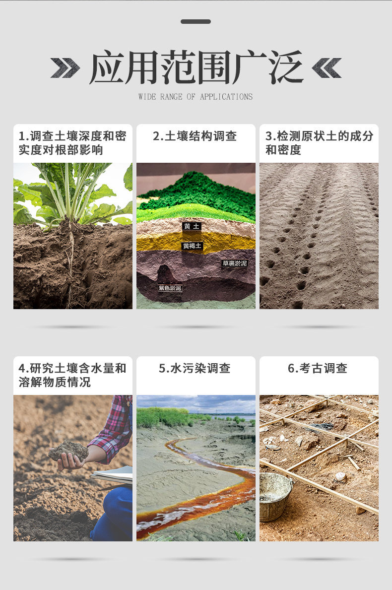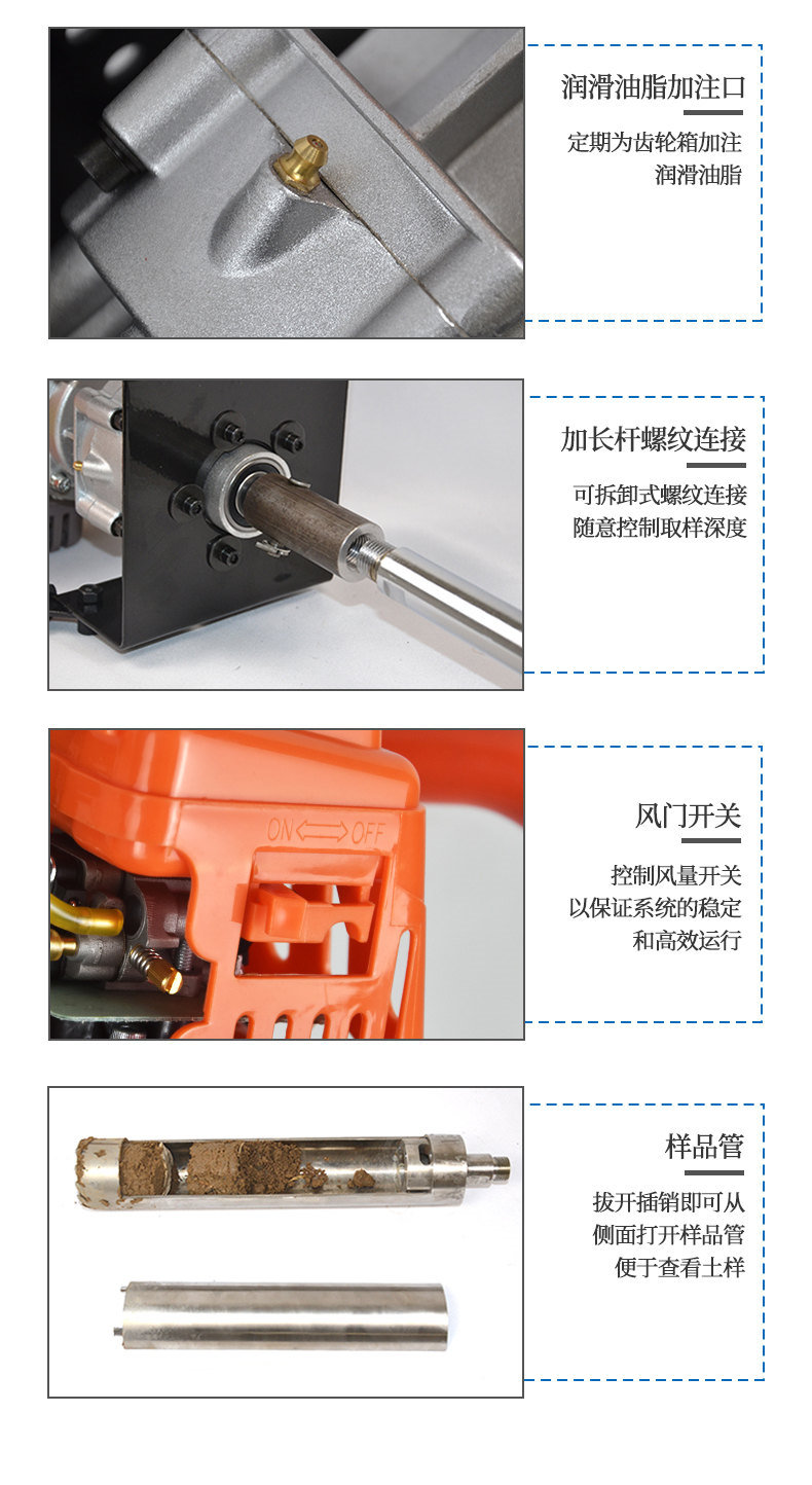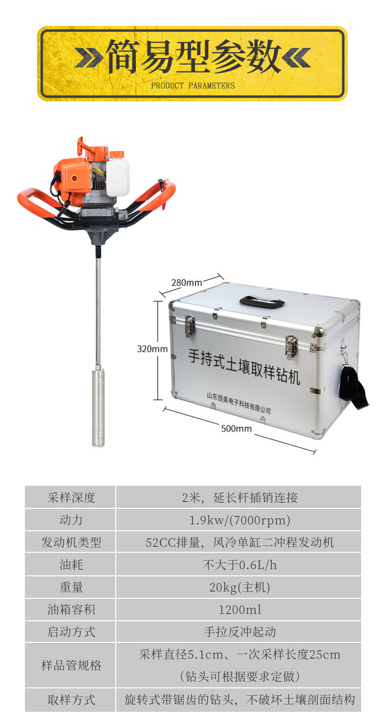 與傳統的手鉆比較,HM-QY800土壤取樣鉆機鉆取的深度更深、取樣的效率更高,并且取得的是原狀、基本無擾動和壓縮(視地形而定)的土壤樣品。在取樣深度超過半米、對土壤樣品的質量(原狀、無擾動、無壓縮)要求較高的項目中,采用該設備是不錯的選擇。