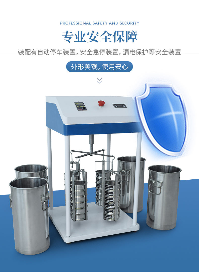 4、標(biāo)準(zhǔn)篩孔徑:10mm,7mm,5mm,3mm,2mm,1mm,0.5mm,0.25mm。(可選配其他規(guī)格孔徑)