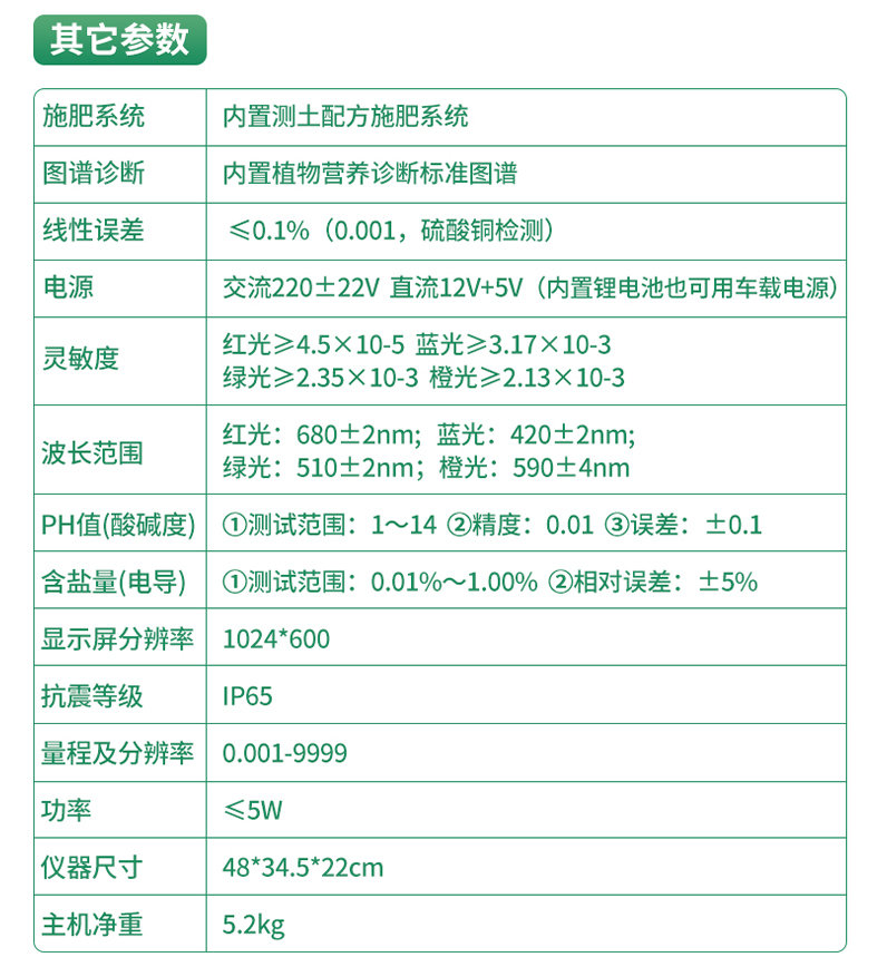 土壤氮磷鉀誤差≤1%,有機質誤差≤2%,微量元素相對誤差≤5%;肥料單項誤差≤0.5%,氮磷鉀三項誤差≤1%;
